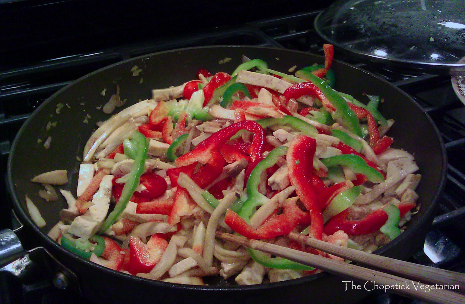 8. Turn off heat. Place lid on pan. This will allow the bell peppers to cook but still maintain the crispiness.